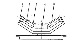 (4)在固定式托架的結(jié)構(gòu)中,將槽形托輥兩側(cè)托輥的外端向輸送帶運行方向偏斜